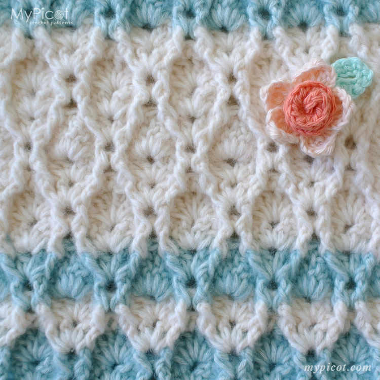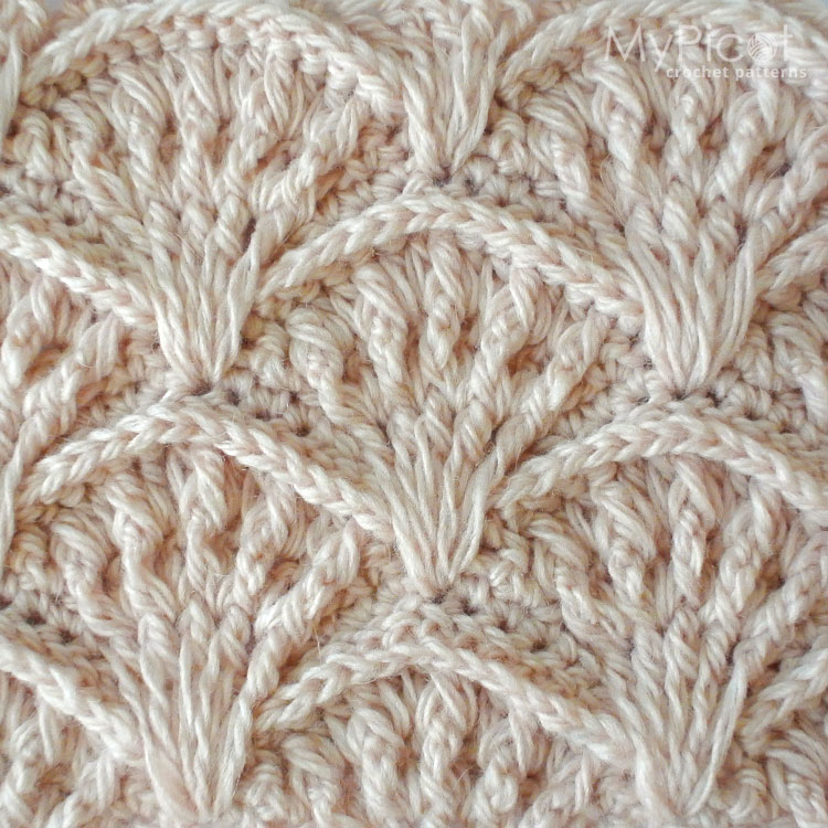 This stitch creates a textured, dense, and durable crochet fabric with raised shell motifs 🌸