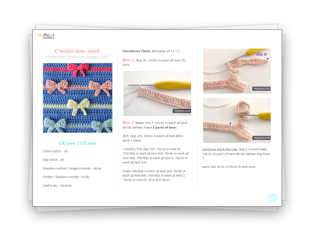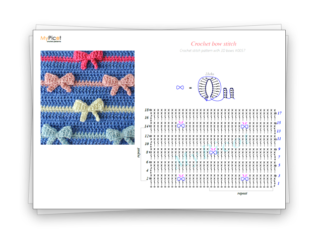 Pattern downloadsHere, you will find the chart and step-by-step instructions for the Crochet bow stitch 🌸