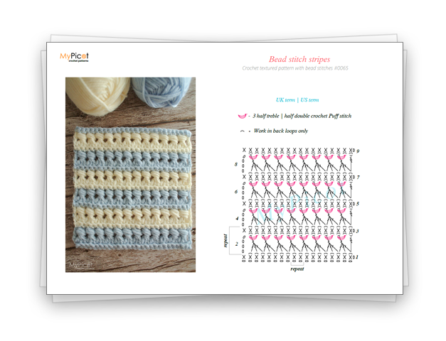Pattern downloadsHere, you will find the chart and step-by-step instructions for the Bead stitch stripes 🌸