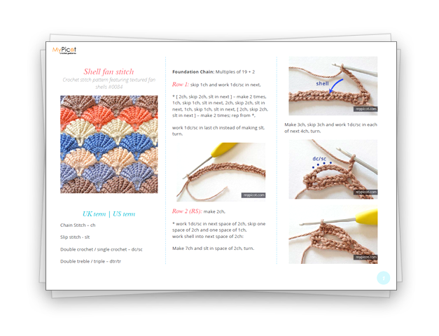 Pattern downloadsHere, you will find a chart and step-by-step instructions for the Shell fan stitch 🌸