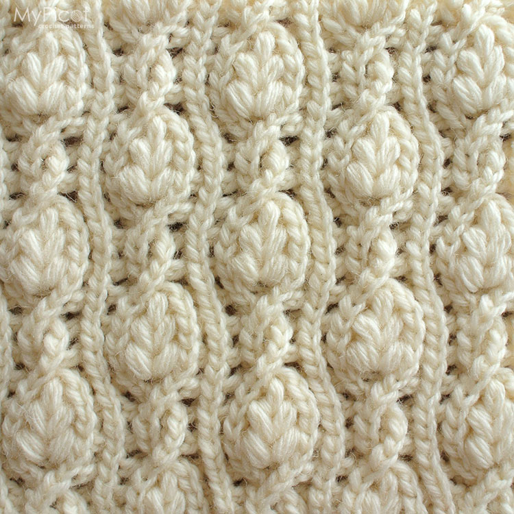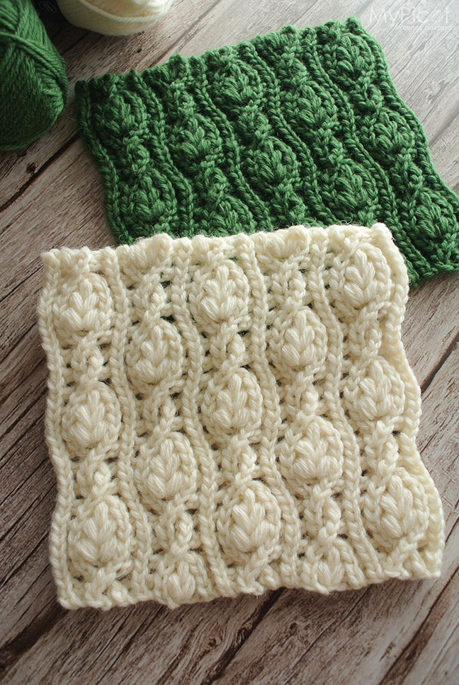 This stitch brings together cables and botanical leaf motifs in an open, textured fabric. Leafy Medallion works beautifully for warm cozy garments, accessories, blankets, and home decor.