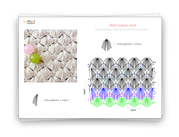 Pattern downloadsHere, you will find the chart and step-by-step instructions for the Shell cushion stitch 🌸