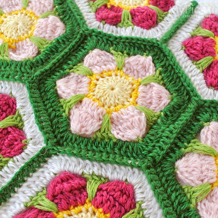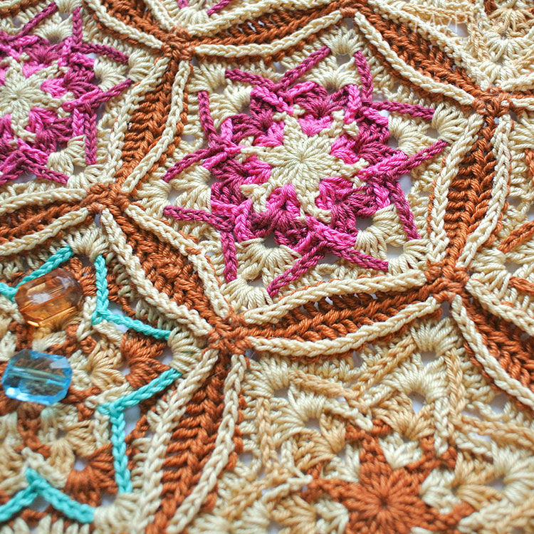 Using multiple colors enhances this effect, creating fabric that feels almost like textile patchwork. These motifs are wonderfully versatile: beautiful as individual pieces or joined together for blankets, bags, and garments with distinctive all-over character.